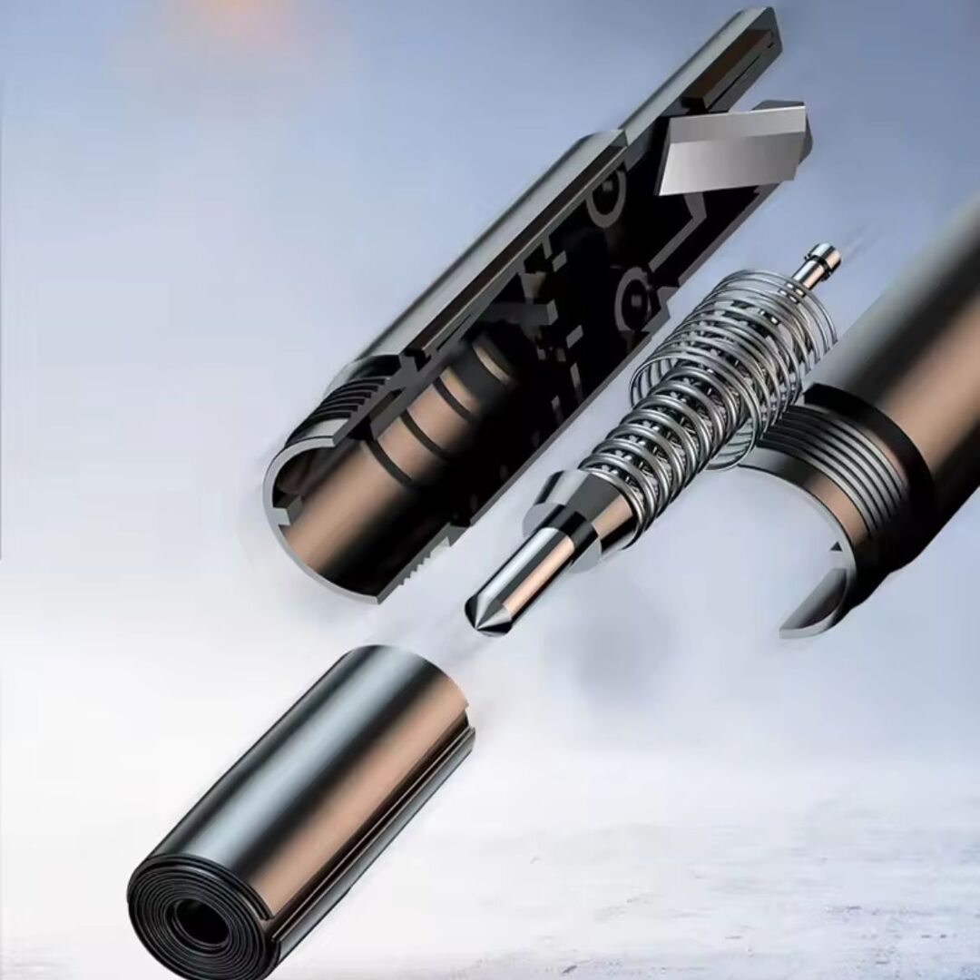 ✅ Brise-vitre haute pression – Ressort intégré et pointe en acier tungstène (dureté 55), force d’impact de 6 kg, capable de briser instantanément les vitres latérales trempées.