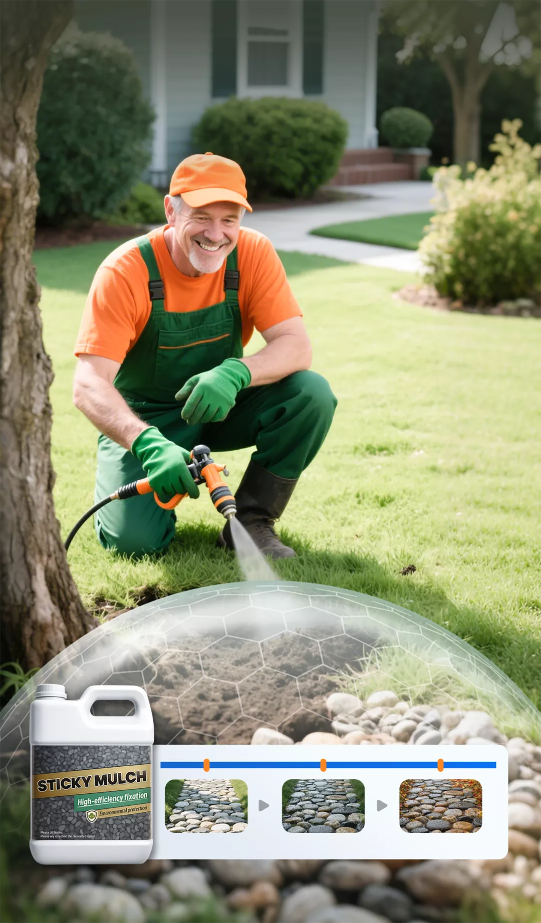Résistant aux intempéries – Reste efficace même après la pluie et le vent. Finition invisible – Colle transparente qui préserve l’aspect naturel du paillis. Application rapide – S’utilise facilement avec un pulvérisateur ou un arrosoir. Résultat durable – Maintient tout en place pendant plusieurs semaines. Polyvalent – Convient au paillis, aux écorces, aux copeaux de bois, au gravier et aux pierres décoratives.